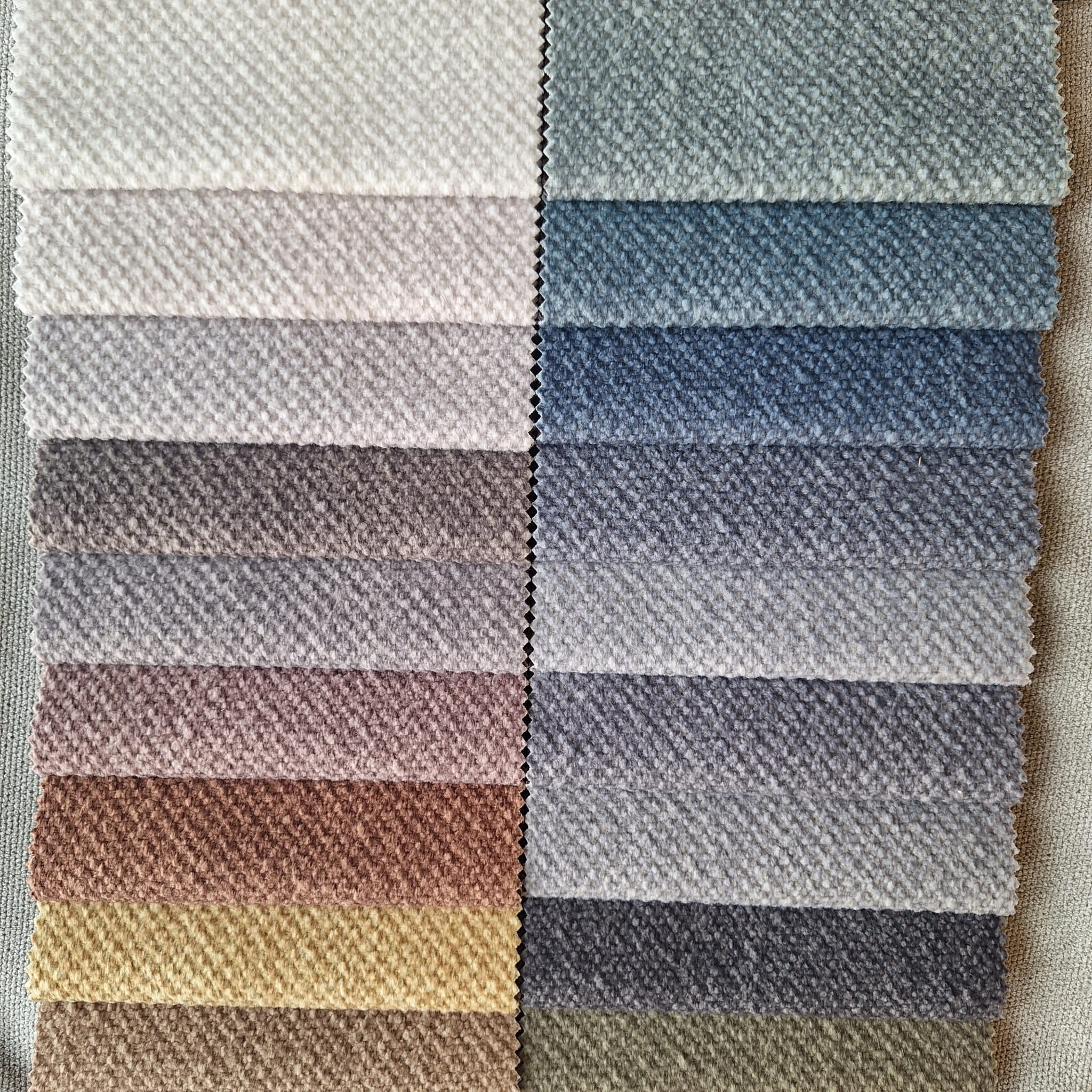 Povrch látky je velmi jemný, měkký a vizuálně klidný, s přirozeným textilním vzhledem. Design působí nadčasově a snadno se kombinuje s různými styly interiérů.